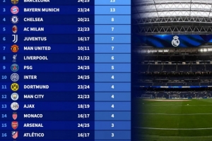 1、皇马 17次,23/24赛季