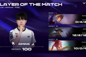 体育资讯4月15日讯 LCK第二赛段今日KT以2-1战胜了DK,Aiming整个系列赛发挥出色,斩获KT对阵DK系列赛POM!