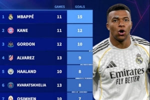体育资讯4月16日讯 欧冠8强战全部结束,在次回合比赛中姆巴佩、凯恩均有进球,以下为目前阶段欧冠射手榜: