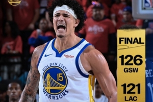体育资讯4月16日讯 附加赛勇士客场126-121逆转快船,将和太阳争夺西部第八。