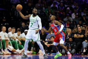 马祖拉麾下球队防守体系严密,换防弹性强、篮板保护到位,能有效限制对手外线出手与内线冲击。核心杰伦・布朗常规赛场均28.7分6.9篮板5.1助攻,塔图姆伤愈复出后状态稳步回升,两人组成的双探花组合兼具攻坚与组织能力,普理查德、豪泽等角色球员提供稳定外线火力,替补阵容深度充足。