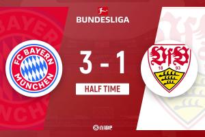 第37分钟,拜仁前场组织攻势,连续传递后路易斯·迪亚斯得球,随后他再送横传,阿方索·戴维斯点球点附近起脚攻门得手,拜仁3-1斯图加特。↓