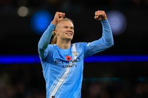 近8场英超比赛对阵阿森纳,哈兰德已经打进6球。两队在英超赛场上的交锋中,仅有阿圭罗(15场8球)以及德布劳内(16场8球)比挪威前锋进球更多。