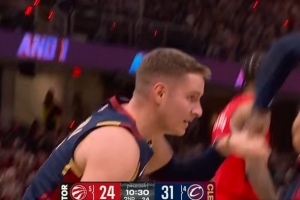 精神可嘉!斯科蒂·巴恩斯试图隔扣贾勒特·阿伦 但因脱手而失败