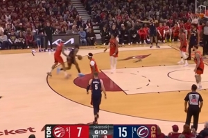 精神可嘉!斯科蒂·巴恩斯试图隔扣贾勒特·阿伦 但因脱手而失败