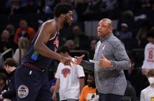 里弗斯:“嗯,这意味着我来过这里。你知道,我在这里执教过。在这个地方,能看到马克西,德拉蒙德这些我执教过的家伙,这总是很好的。我对纳斯有着很深的感情,希望他一切顺利。显然今天没看到恩比德,他大概正躺在哪里的床上缝着针呢,我因为这个早早地就来了,并且见到了我所有的朋友。”