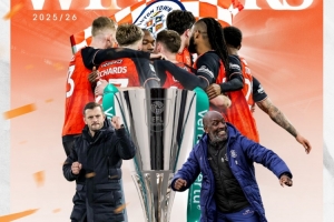 体育资讯4月13日讯 英锦赛决赛,卢顿以3-1的比分战胜斯托克港夺冠,34岁少帅威尔希尔拿到执教生涯首个冠军。