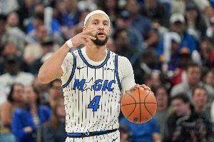 体育资讯4月16日讯 NBA附加赛,魔术半场55-59落后于76人。